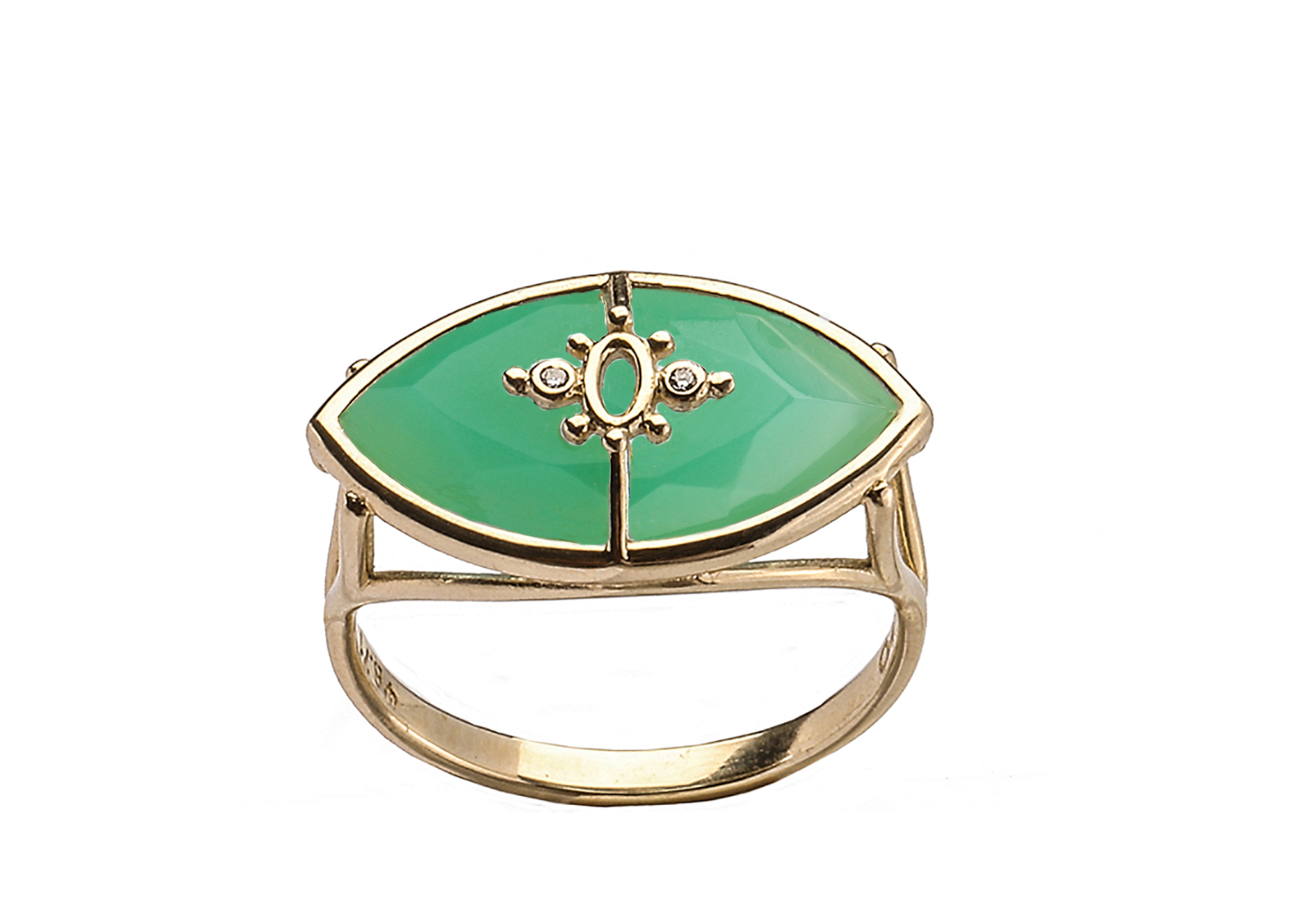 Published 29/08/2025 at 2098 × 1494 in PARADISO PERDUTO – Solid Gold Eye Ring, Green Chalcedony & Diamonds