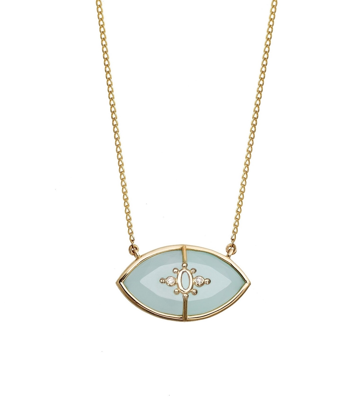 Published 13/03/2026 at 1529 × 1685 in PARADISO PERDUTO – Solid Gold Eye Necklace, Aqua blue Chalcedony & Diamonds