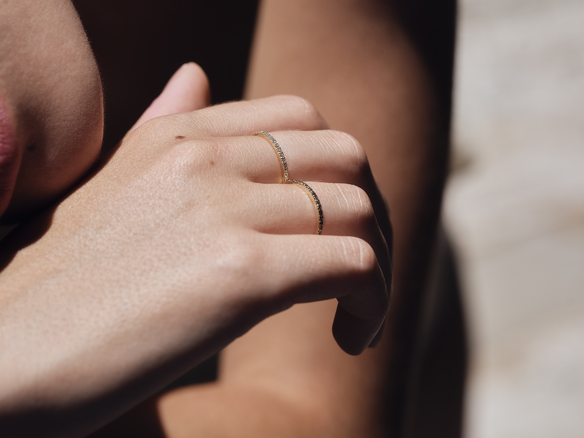HALF MOON – Solid Gold Ring, Brown Diamonds