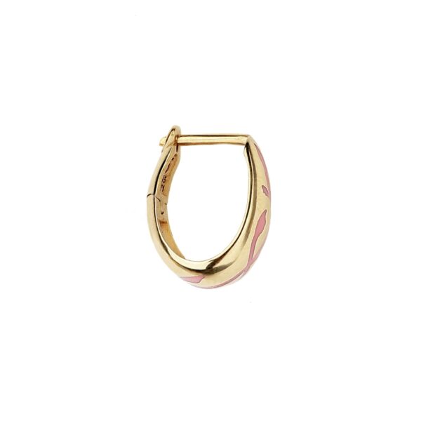 These blooming earrings, inspired by the Japanese flower Momo, are a praise of nature. Momo represents beauty, longevity, and immortality in Japanese culture and each earring is hand-painted with enamel while a special finishing also done by hand, makes their surface smooth and shiny. The blush-pink enamel creates a mellow blend with yellow gold, making these hoop earrings a loving piece to enjoy at all times.