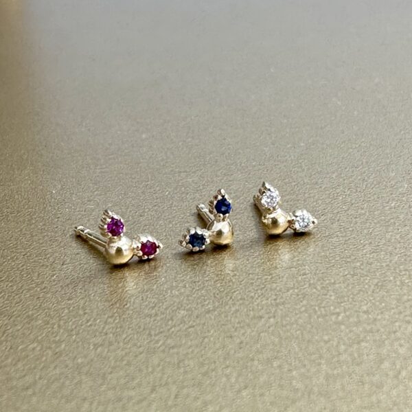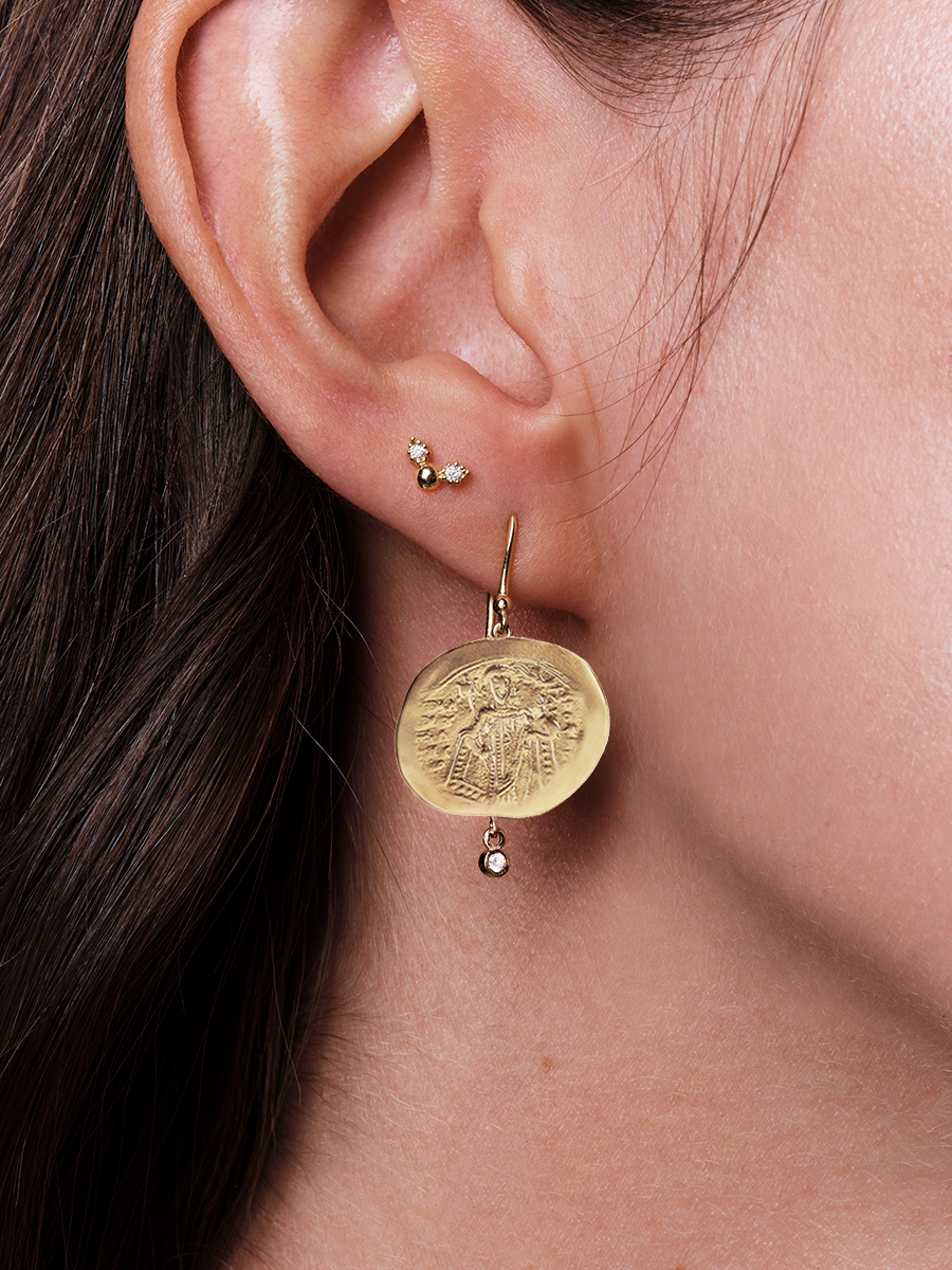 This perfect little earring is designed to be your most loving precious detail. A half boule in the middle with two tiny “lace wings” holding the sparkling white diamonds. Wear one, or two, or three and you will love, love, love them!